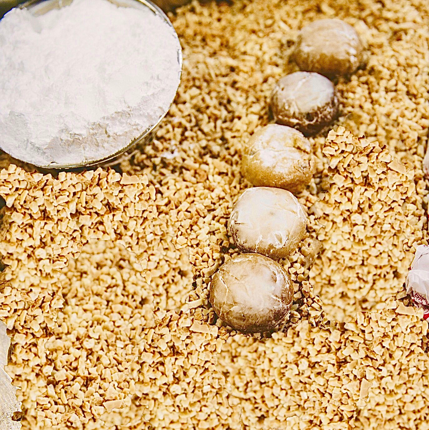 Bocaditos de Avellanas elaborados artesanalmente a mano con aceite de oliva virgen extra, a granel 500 gramos.