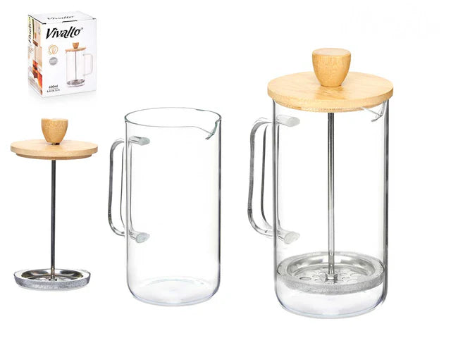 Tetera de Bambú con Embolo prensador, 100% Borosilicato Capacidad 600 ml.